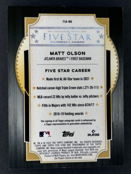 2022 Topps Five Star Autographs #FSAMO Matt Olson