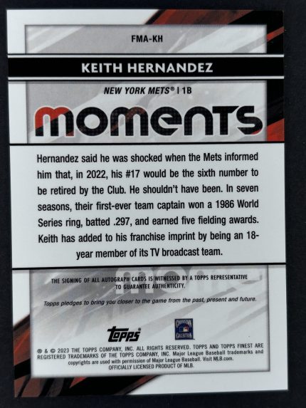 2023 Topps Finest Keith Hernandez Moments Autograph