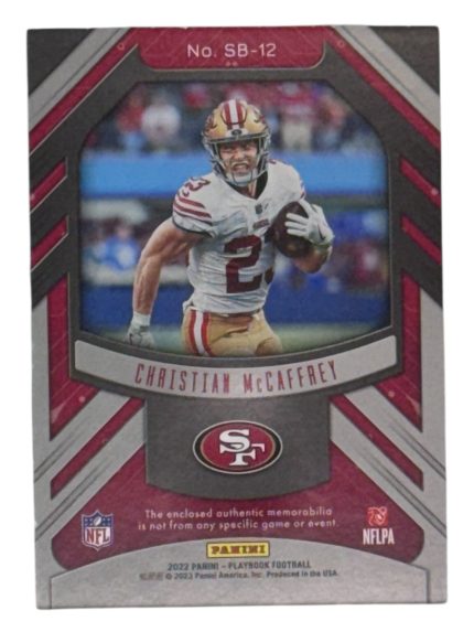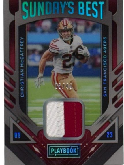 2022 Panini Playbook Christian McCaffrey Sunday’s Best Relic Card 26/49