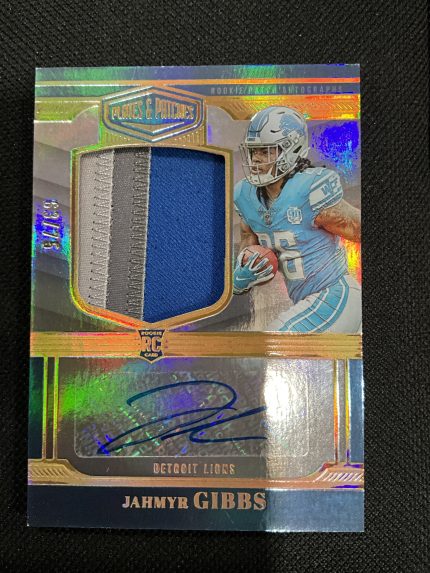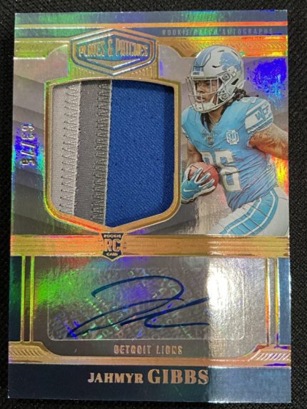 2023 Panini Plates and Patches Jahmyr Gibbs relic/ auto RC 63/75